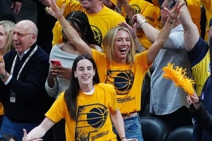 体育资讯6月14日讯 NBA总决赛G4,步行者104-111不敌雷霆。狂热球星凯特琳-克拉克现场观战。