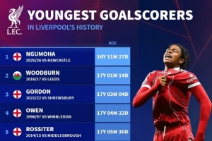 此役16岁小将恩古莫哈在终场补时阶段为利物浦攻入绝杀进球,据德国转会市场统计,他是利物浦队史最年轻的进球者。