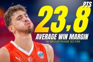 根据数据统计,这波4连胜期间,土耳其男篮场均赢23.8分。