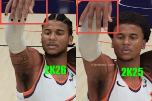有网友细心发现指出,在2K26的游戏画面中,2K给杰伦-格林细心地在其指甲盖上涂了指甲油;而在2K25中,杰伦-格林是没有指甲油的。
