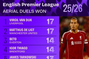 体育资讯9月3日讯 数据机构squakwa统计了新赛季英超球员成功争顶情况,两位荷兰中卫并列榜首。