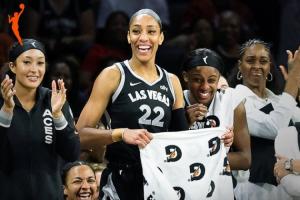 本场,阿贾-威尔逊出战34分钟,投篮15中12,三分1中1,罚球7中6,砍下31分8篮板2助攻1抢断2盖帽,正负值+13!