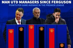 弗格森离任后曼联各任主帅场均积分: