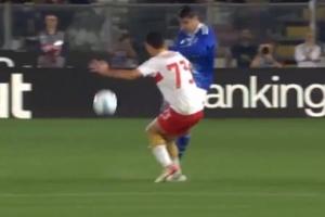 第5分钟,莫拉塔中场“吊射”↓