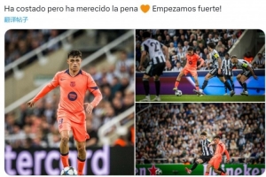 佩德里社媒晒出比赛照片,配文:“虽然过程很艰难,但一切都值得🧡我们强势开局!”