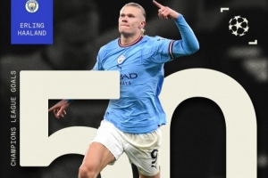 哈兰德也成为第10位达成欧冠50球成就的球员。