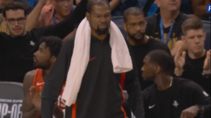 GIF-申京神奇打板中投命中&造成犯规 全队起立杜兰特撇嘴做鬼脸