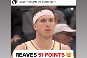 此役,里夫斯出战39分钟,22投12中,三分球10中6,22罚21中爆砍生涯新高的51分外加11板9助2断,正负值高达+22。
