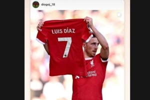 就在那张照片拍摄前不久的2023年10 月底,路易斯-迪亚斯的父母在他们的祖国哥伦比亚被绑架。为了表示支持,若塔在10月29日利物浦对阵诺丁汉的联赛(3-0)中打入首球后,举起了队友兼好友的球衣。