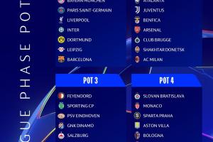 回看联赛阶段抽签前的分档,第一档和第二档各有一支球队被直接淘汰。