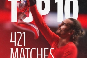 与此同时,格列兹曼已经以195球领跑队史射手榜,再进5球就能达成200球里程碑。