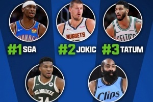 戴维斯给出的排名是:1、亚历山大 2、约基奇 3、塔图姆 4、字母哥 5、哈登