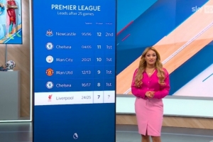 英超25轮积分领先7+球队: