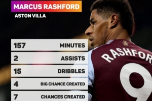 据OptaJoe的数据统计,自从为维拉首秀以来,拉什福德在英超联赛创造了最多的绝佳机会(4次),他还有并列最多的助攻(2次)和过人成功(15次)。