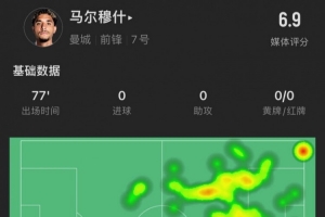 体育资讯2月24日讯 英超联赛第26轮,曼城主场对阵利物浦的比赛正在进行中,本场比赛曼城前锋马尔穆什首发登场,第77分钟被换下,以下是他本场比赛的数据。