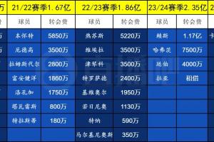 阿尔特塔执教阿森纳后已经经历了5个夏窗的引援,即将开启第6个夏窗,此前5个夏窗总计花费7.83亿欧元。
